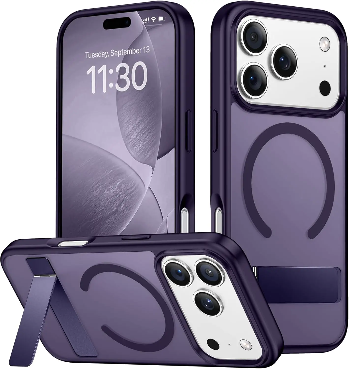 Magnetic Mobile Phone Case with Stand for iPhone 16 17 Pro Max 15 14 Plus 13 12 Translucent Cover with Kickstand