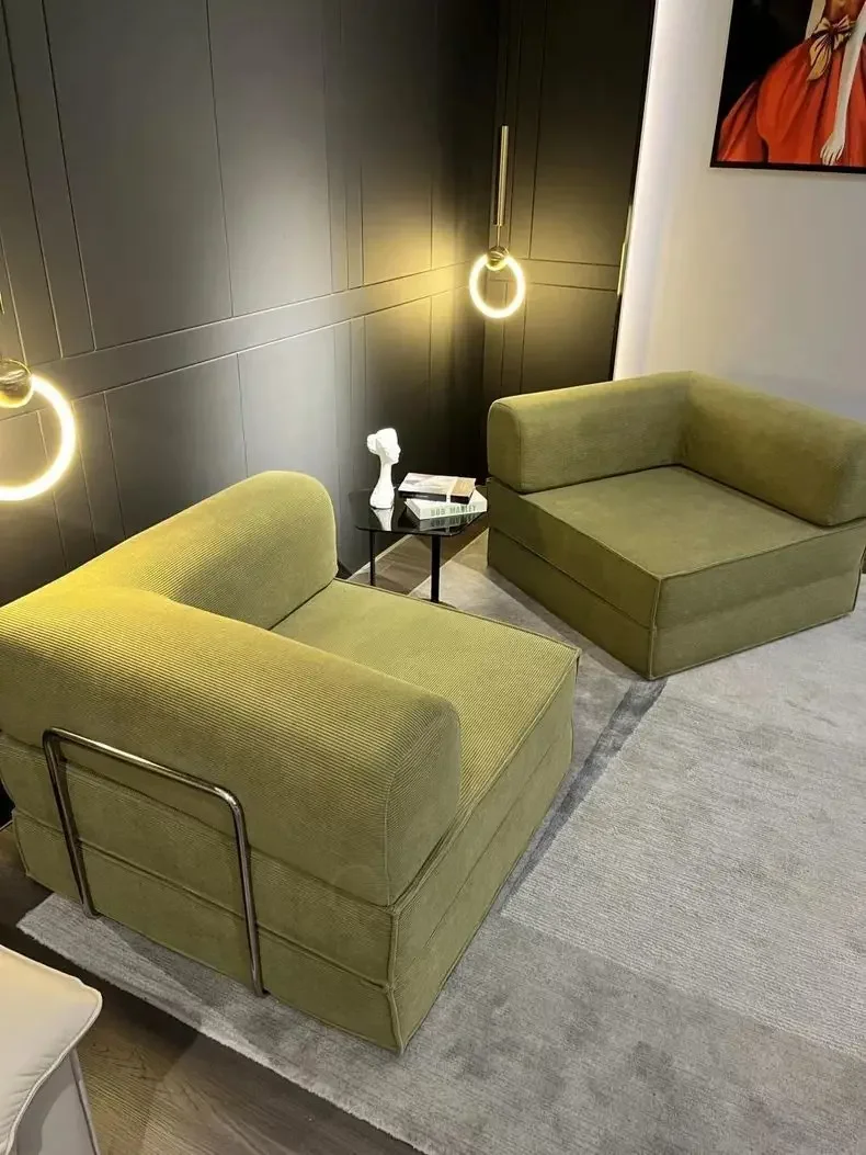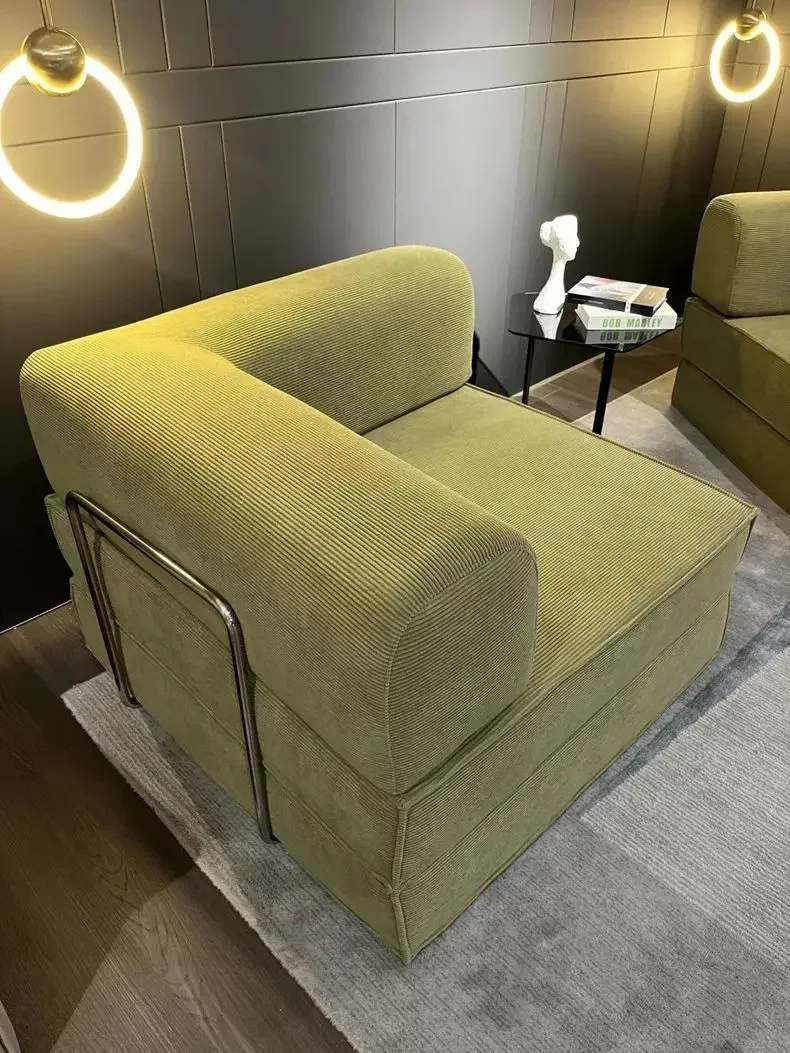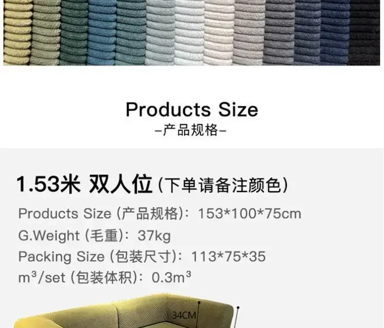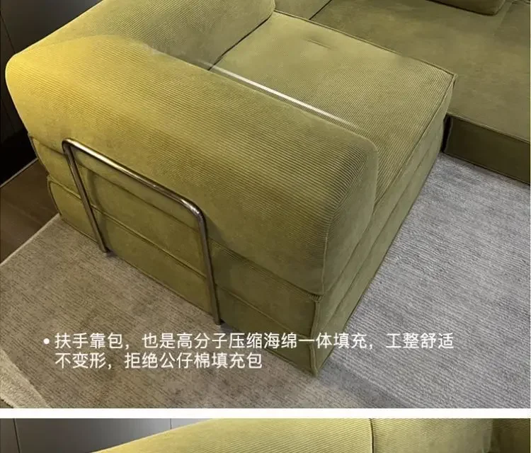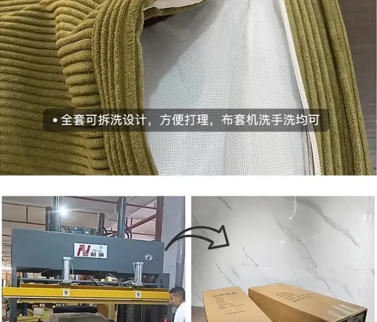 This sofa is made of thickened corduroy fabric, which has undergone special anti - pressure and anti - wrinkle treatment, not easy to wrinkle, and has a comfortable and durable touch. The interior is filled with 45D high - density, pressure - resistant polymer compressible sponge, which has high density and high resilience, refusing to collapse. The bamboo charcoal particles on the sponge can effectively absorb odors and harmful gases in the air, reduce bacterial growth, and keep it dry and clean.